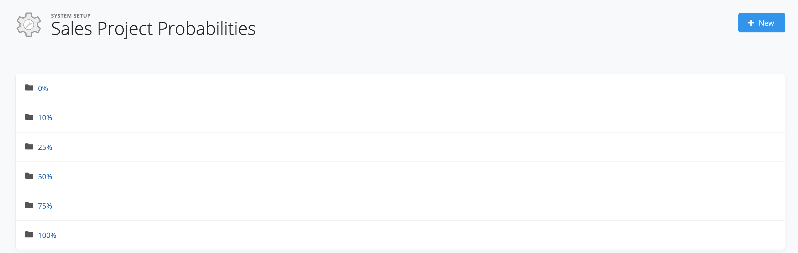 But it is possible to add your own values of Probabilities, and even add some descriptive names to them to help your sales team apply probability correctly.