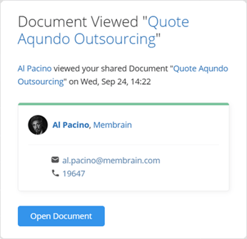 When a Quote is shared externally, recipients can access it through a secure link. Each time your recipient(s) open the link, Membrain tracks the interaction and displays a notification in Membrain Guide, giving you insight into client engagement.