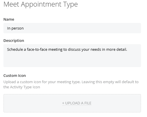 Users can select which Appointment Types appear on their Personal Meet link, allowing them to offer different types of meetings to customers or prospects.