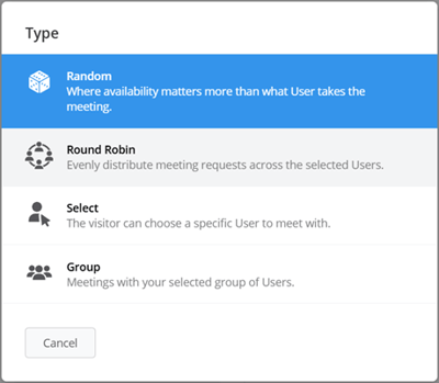 Meet Pages support four booking types that allow you to control how meetings are assigned across your team: