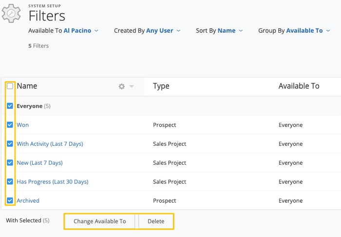 Administrators of Membrain can view all the Filters the whole team has created, and easily manage them or create and save new ones from a central location - The Filter Admin page. This centrally managed area, found under System Setup, also gives you additional control over how Filters are used, with the following functionality: