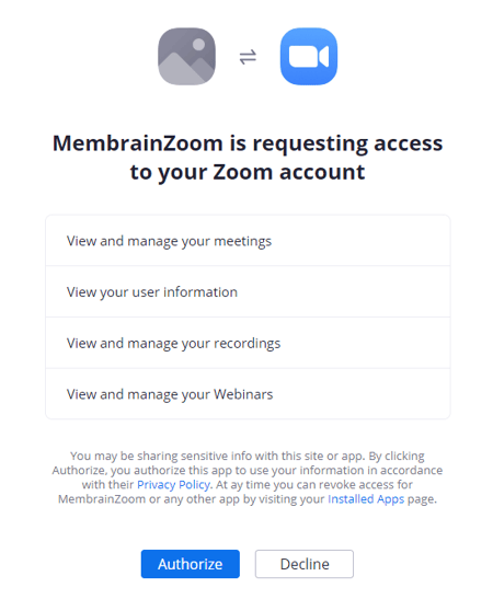 This option is added once you turn on the Zoom integration, and can be turned on or off in your Membrain Meet settings.