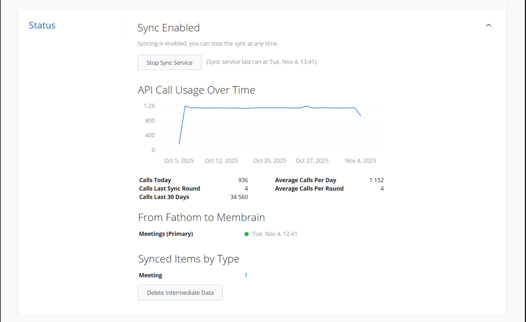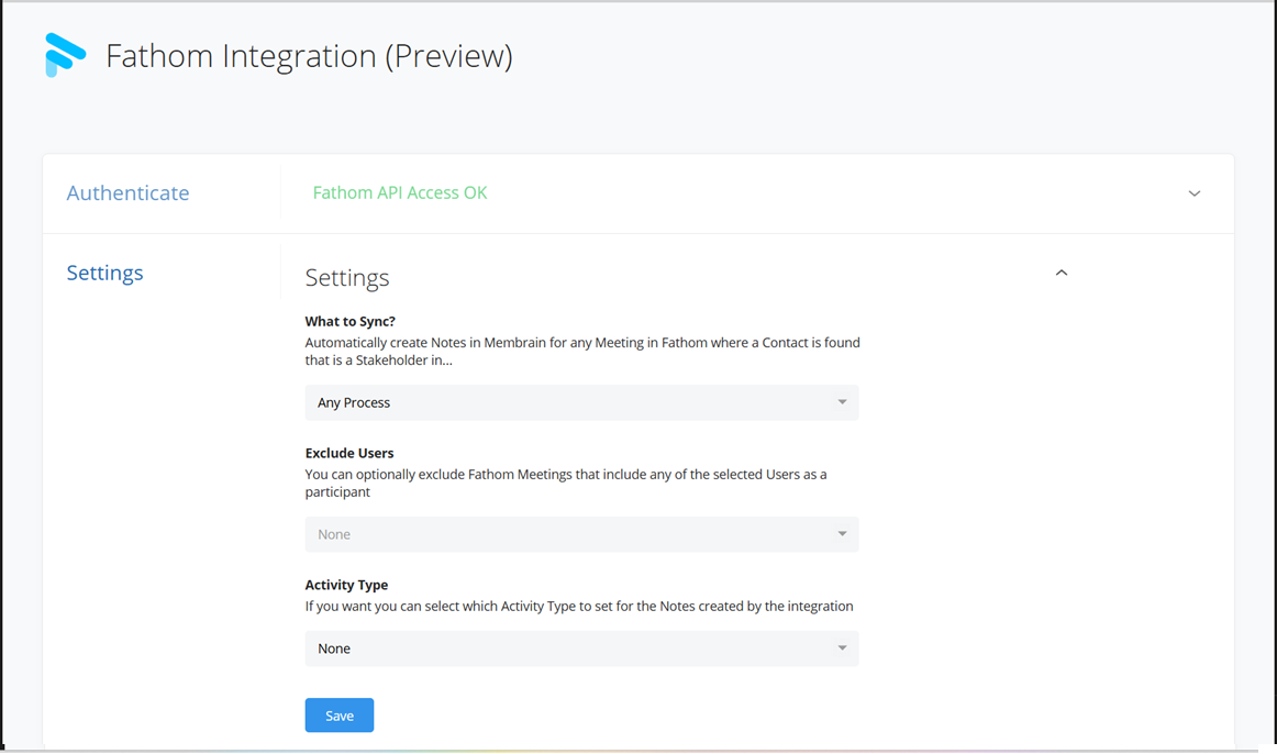 The Fathom integration allows you to automatically sync meeting summaries from Fathom into Membrain as rich-text notes. These notes include participant statistics, key insights, and direct links to meeting content, making it easier to keep track of important conversations and follow up effectively within your sales workflow.
