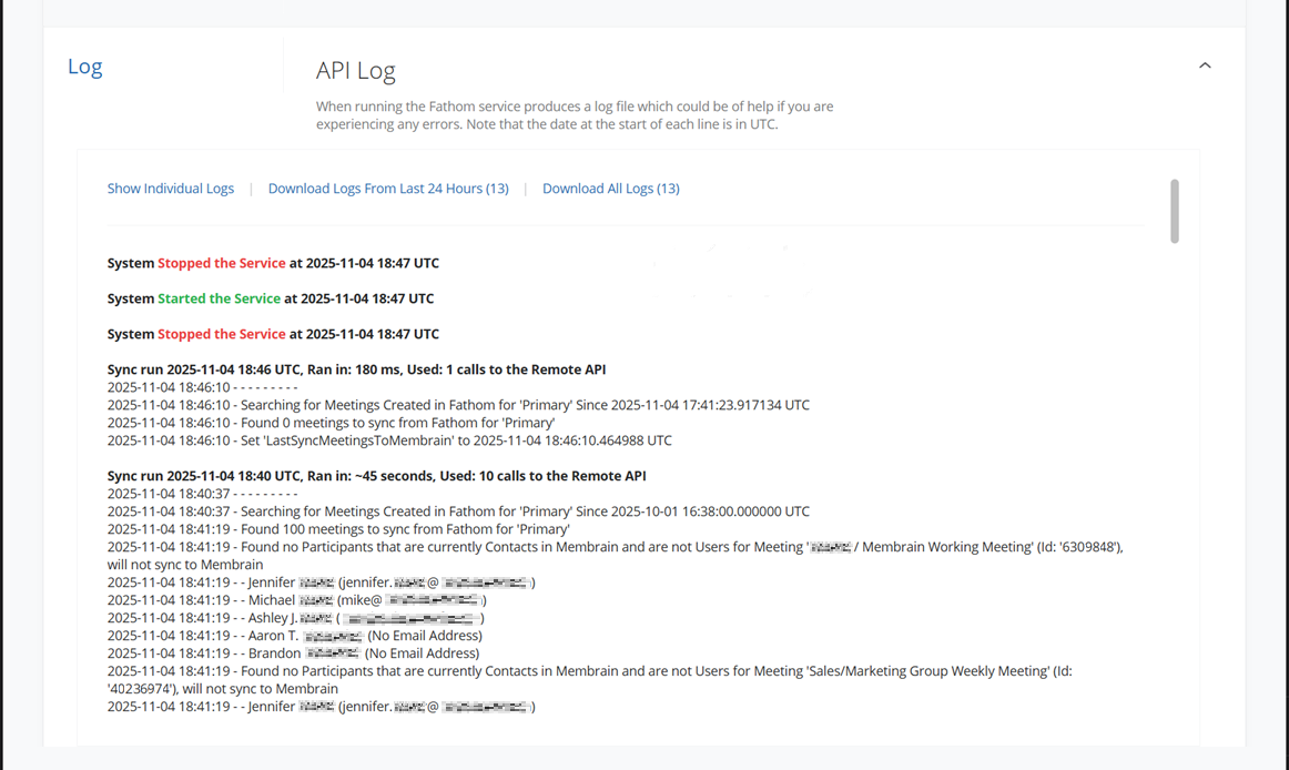 This log can be useful for those with a more technical background. The log lists every event related to the sync in date order and can be very useful for analyzing or troubleshooting the sync.