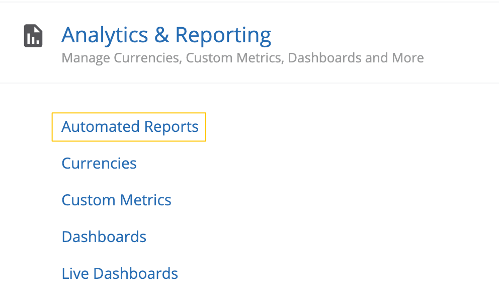 - On that page, under the Analytics & Reporting tabs you will find the Automated Reports setting.