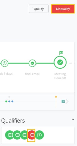 According to the qualifiers' importance and color that is tied to that, you will receive a recommendation on whether you should qualify or disqualify the prospect you're working on.