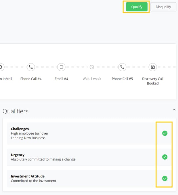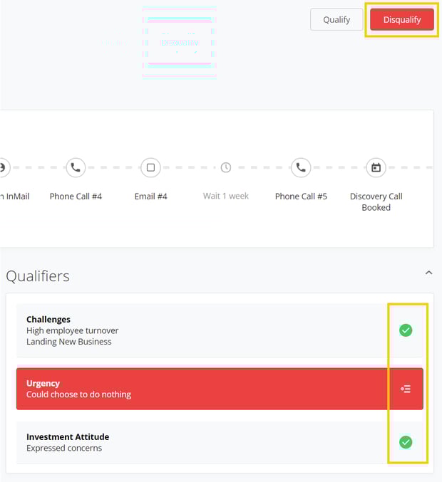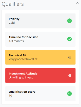 And, according to the qualifiers' color, you will receive a recommendation on whether you should qualify or disqualify the prospect you're working on.